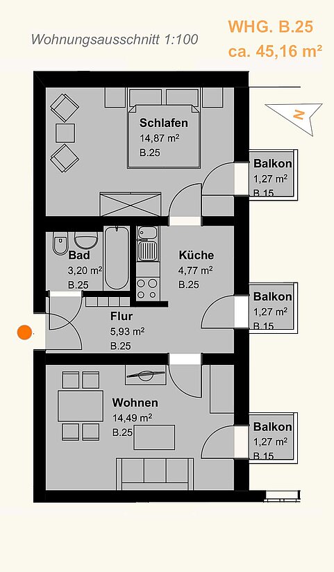 Wir bieten helle 2 - 4-Zimmer Wohnungen mit barrierefreien Eingängen und Aufzügen sowie variierender Ausstattung für Ihre individuellen Bedürfnisse. Die Wohnungsgrößen in unserem Haus reichen von 38 - 93qm und haben entweder große Fenster oder einen Balkon.